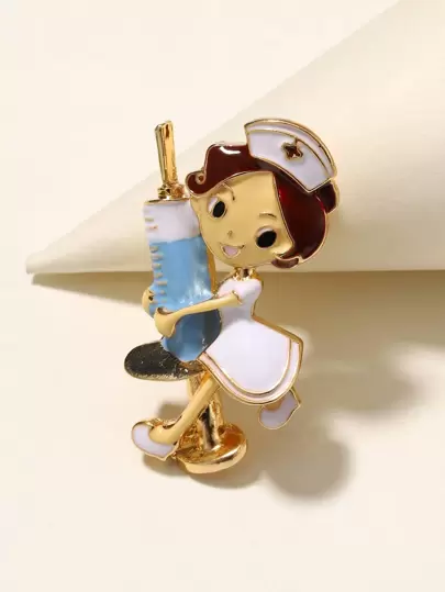 Broche con diseño de enfermera de dibujos animados - Multicolor - Añade 1