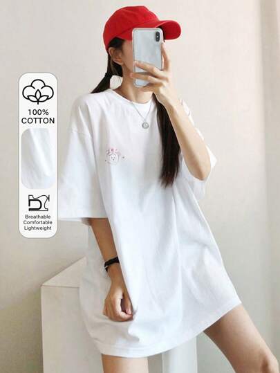 DAZY Camiseta oversize con estampado de dibujos animados y hombros caídos - Blanco - Añade 6