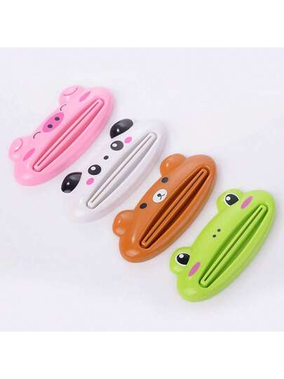 Dispensador de pasta de dientes de plástico con forma de dibujo animado, exprimidor manual de pasta de dientes con forma de dibujo animado, exprimidor de labios multiusos - Multicolor - Añade 4