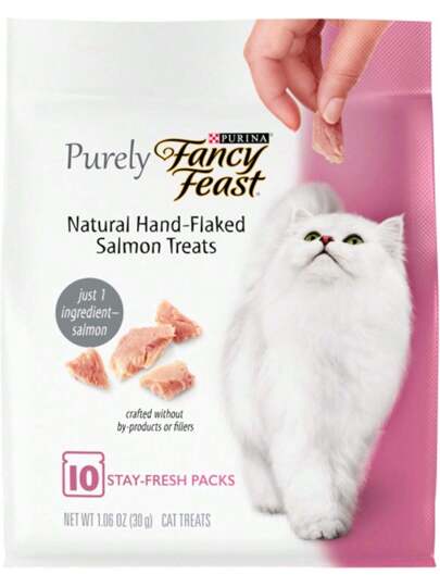 Purina Fancy Feast Purely Natural, golosina para gatos de salmón en escamas hechas a mano - bolsa de 1.06 (5 unidades) - 1 - Añade 4