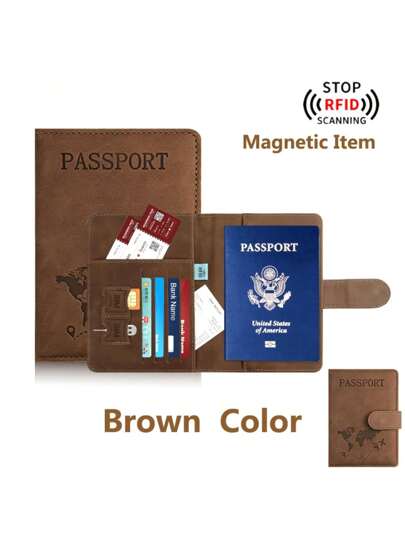 Porta pasaporte para artículos esenciales de viaje, funda tipo billetera para pasaporte, accesorios de viaje, porta libros para pasaporte para mujeres/hombres - Marrón - Añade 1