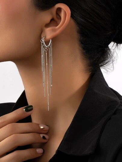Pendientes largos con cadena con fleco - Plateado - Añade 2