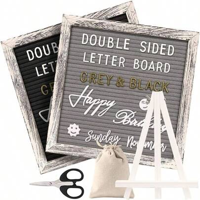 Pizarrón y Letrero de Madera Vintage 25 Cm x 25 CM Tablero de Letras de Fieltro de Doble Cara Tableros de Mensajes con Soporte y 340 Letras Número Etc Intercambiables Para Hogar Oficina Decorar - gris - Añade 2