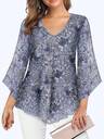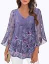 CheersLife Blusas holgadas de mujer con cuello en V, de doble capa, de manga 3/4 y estampado floral