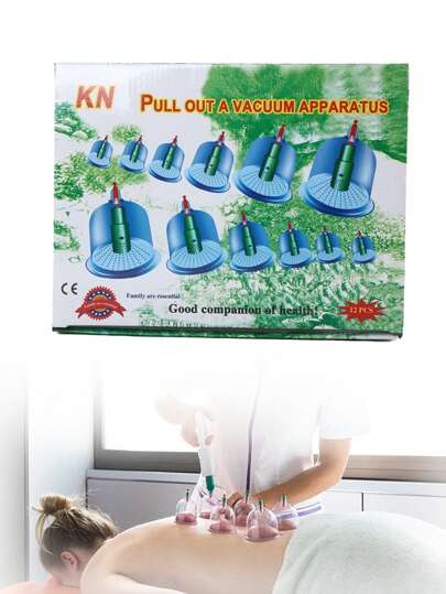 Juego de ventosas al vacío, juego de ventosas profesionales de 12 piezas para masaje con bomba manual, adecuado para uso en estudio o en el hogar. - transparente - Añade 1