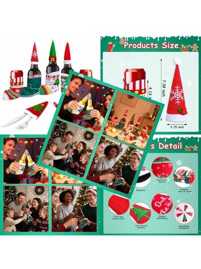 10pcs Christmas Party FavorsBeer Can Cooler Sleeves and Silverware Bags Combo Reusable Beer Drink Soda Can Bottle Cooler Sleeves 12oz-16oz and Utensil Holder Bundle Christmas Party Decorations Supplies - Mezclado - Añade 4