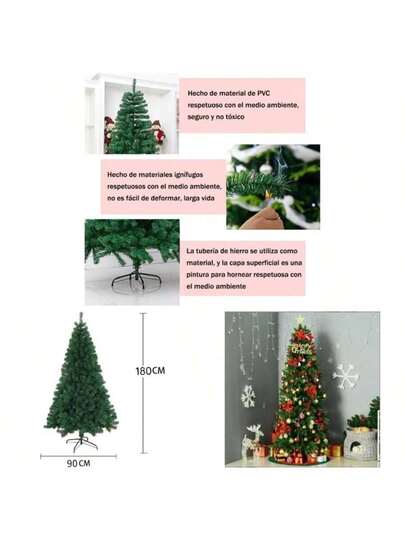 rbol de Navidad Artificial 1.8 con 600 Ramas, Realista y de Montaje Fcil, Soporte Metlico Estable u2013 para Hogar, Oficinas, Vestbulos y Escenarios Comerciales - Verde - Añade 3