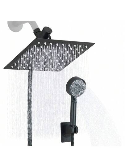 Lista de productos 1*Cabezal de ducha de 8 pulgadas 1*Ducha de mano 1*Manguera de 1.5M 1*Desviador de 3 vías 1*Cinta impermeable 1*Gancho de ducha manual