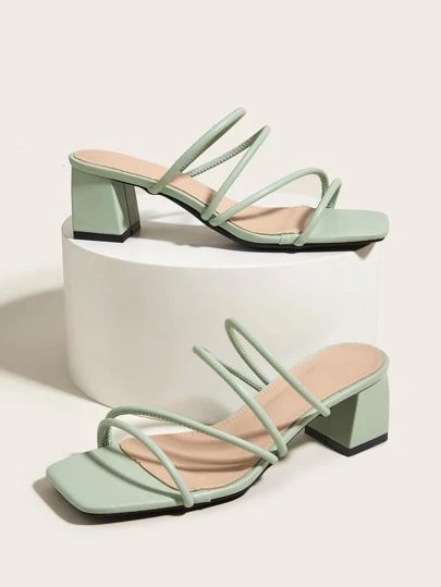 Sandalias de tacón alto para mujer, nuevo estilo 2025 para uso en verano y al aire libre, elegantes con vestidos, sandalias tipo chancla con tira - verde menta - Añade 1