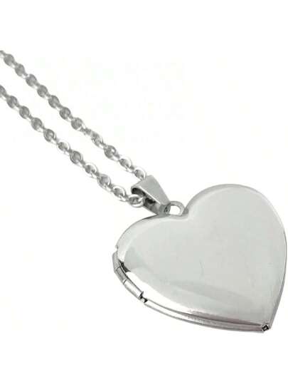 Collar Relicario para Fotos de Acero Inoxidable Corazón, Joyería para Regalo - Plateado - Añade 10