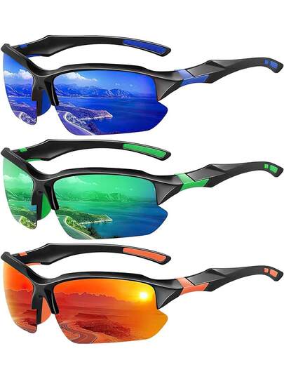 ¡RecomendadoGafas de Sol Deportivas Polarizadas Hombre y Mujer,Gafas Deportivas Ciclismo,Protección UV400,Adecuadas Senderismo,Deportes,Pesca,Ciclismo,Etc¡Top de Temporada - Azul oscuro + Verde + Naranja - Añade 1