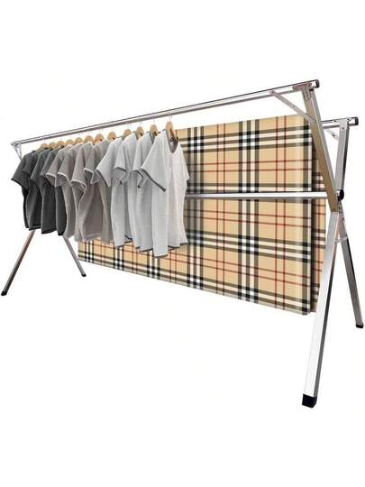 Clothes Drying Rack 2.4m Folding Indoor Outdoor Drying Rack Clothing Collapsible Heavy Duty Stainless Steel Clothesline Blanket Rack Clothesline - Plateado - Añade 1