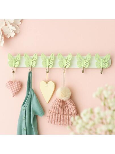 Perchero de 6 Mariposas, Encanto y Organización en Colores Pastel, Ideal para Organizar Ropa y Accesorios en Habitaciones. - Verde - Añade 1