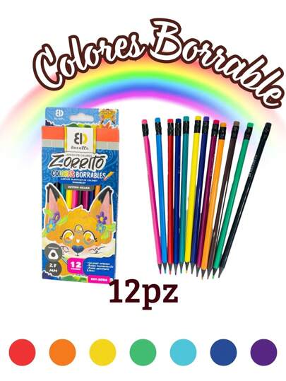 Lapices De Colores Borrable 12pz- Zorrito - Multicolor - Añade 5