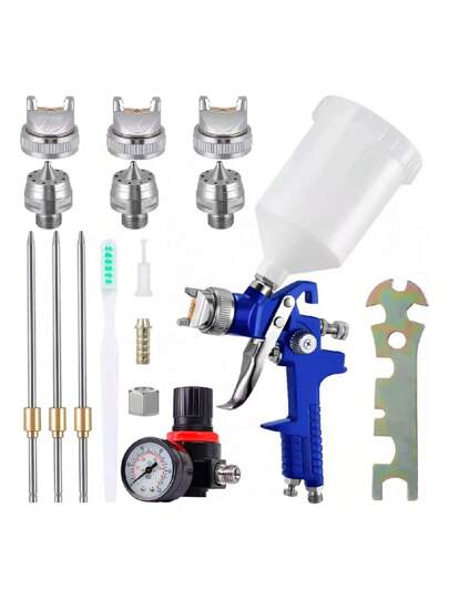 Pistola Pintura Pulverizadora Aire Comprimido Hvlp Pared Kit Vmingo - Azul - Añade 6