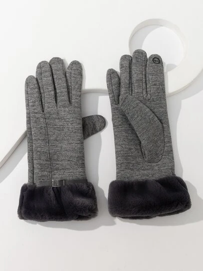 Guantes en contraste mullido - Negro - Añade 1