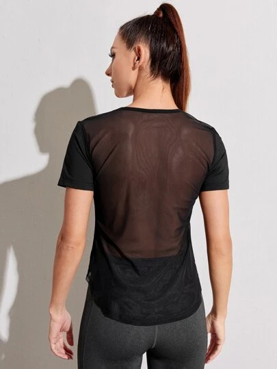Camiseta deportiva escote V con malla en contraste - Negro - Añade 1