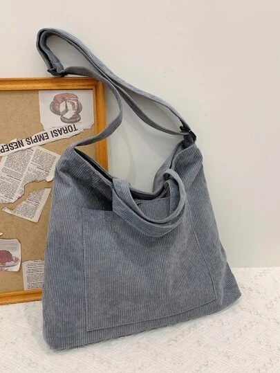 Bolsa de compras de pana de gran capacidad - Gris - Añade 1