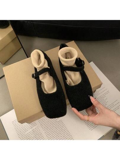 Zapatos Mary Jane Versátiles de Estilo Retro Francés para Mujeres, Otoño e Invierno 2025 Nuevos Zapatos de Alta Gama con Peluche - Negro - Añade 1