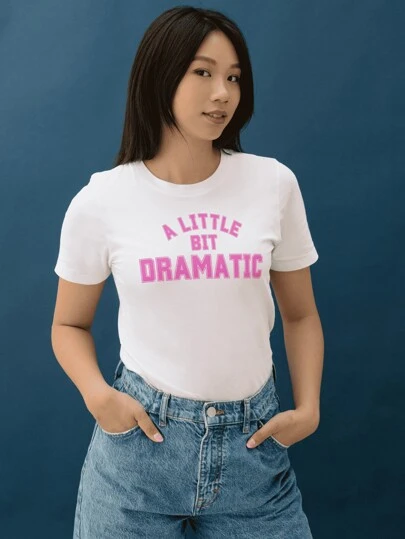 Playera de algodón con estampado A little bit dramatic - Blanco - Añade 1