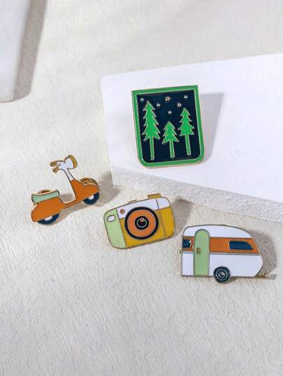 Alfileres de broche con formas creativas de autocaravana, bosque, motocicleta, cámara, elementos de viaje al aire libre, insignias multifuncionales para mochilas, accesorios de ropa - Multicolor - Añade 4