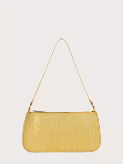 Bolso Tipo Baguette Con Efecto De con patrón de piel de cocodrilo - Mostaza Amarilla - Añade 1
