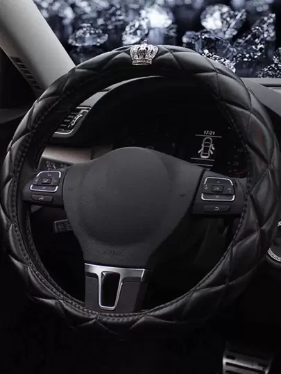 Cubierta de volante con diseño de corona de coche - Negro - Añade 1