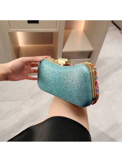 Bolso de mano de embrague con cristales, cartera de mujer con strass, bolso de noche con joyería - Azul - Añade 1