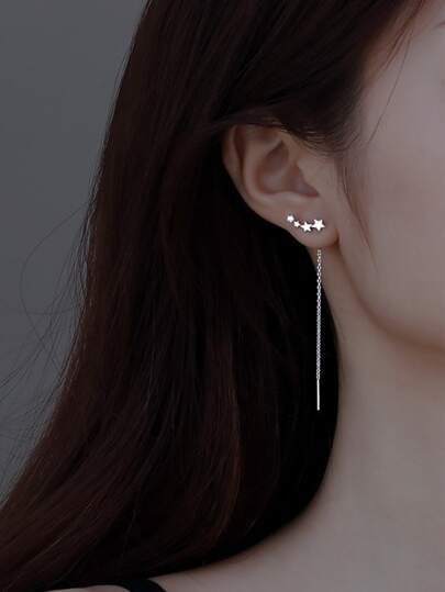 Nooxian Pendientes de enhebrador con diseño zirconia cúbica & de estrella - Plateado - Añade 3