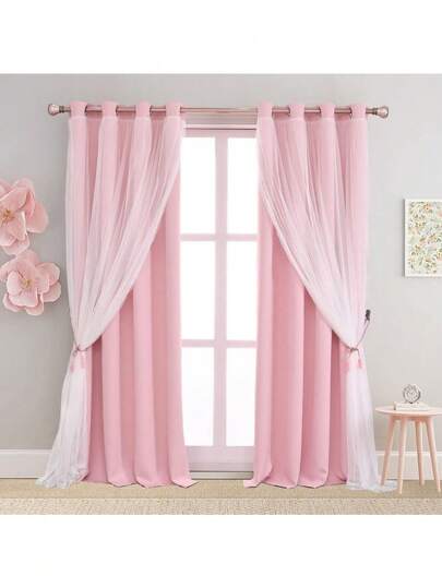 Opacas Cortinas Blackout para Recamara O Sala 2 Paneles,Cortinas Dobles Niñas por Pieza 137 x 213 cm,Cortinas Blackout para Recamara con Aislamiento Térmico,Adecuado para Dormitorios y Salones,Rosa - Rosa - Añade 4