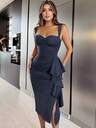 Vestido midi de sirena con volantes, tirantes finos y abertura alta, con sujetador incorporado, elegante y clásico, para fiesta de graduación, Año Nuevo y ocasiones semiformales