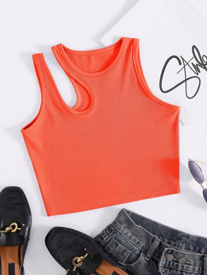 INAWLY Top De Tanque De Punto Acanalado De Hombro Descubierto Sólido Y Casual Para Verano - Naranja - Añade 5