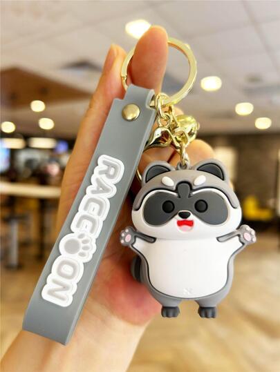 Llavero De Mapache De Mujeres De 1 Pieza Con Cascabel Y Cierre De Metal Dorado, Llavero De Mapache Encantador, Llavero De Mapache Aterrador, Llavero De Pvc De Recuerdo Del Festival - Gris - Añade 1