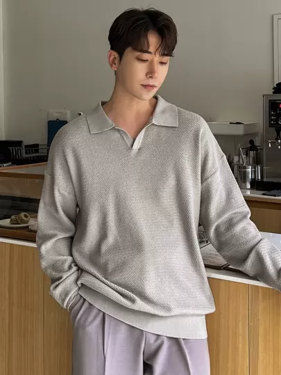 DAZY Hombres Jersey unicolor de hombros caídos - Albaricoque - Añade 1