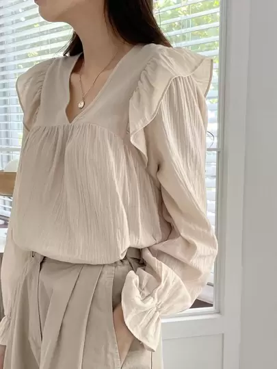 DAZY Blusa con mangas abullonadas y volantes - Albaricoque - Añade 4