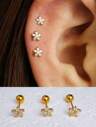 Juego de 3 piezas de pendientes de aro ovalado y pendientes de botón con flor de Plumeria de CZ, chapados en oro de 14K, con circonita clara, para mujer. Juego de pendientes apilables para cartílago, hélix y daith, regalo de joyería para mujeres y niñas