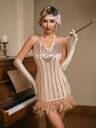 Vestido de lentejuelas con flecos de plumas estilo Gatsby de los años 20 de LVNES - Vestido de fiesta con tirantes finos inspirado en la vendimia para cócteles y eventos temáticos
