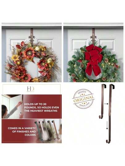 Oil - Rubbed Bronze - Fleur dis lis - Adjustable Length Wreath Hanger with Removable Oil - Rubbed Bronze - Fleur dis lis - Bronce aceptado - Fleur dis lis - Añade 4