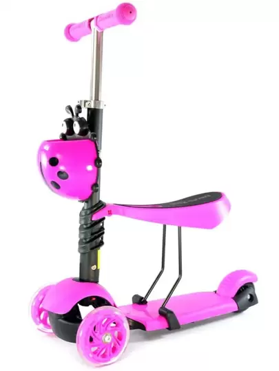 Patin Diablo Scooter Montable Con 3 Ruedas Y Luces Led en las Llantas De Catarina Fucsia, El scooter se puede convertir en carrito que puedes empujar y sin empujar, se convierte en patin y patineta. - Es ajustable conforme tu pequeño crece, - Canastilla al frente de Gusanito o Catarina, - Piso antiderrapante con estrellas en círculos - Rosa Fucsia - Añade 1