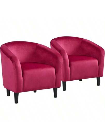 Yaheetech - Juego de 2 Sillas Decorativas de Terciopelo Acogedor, Silla Moderna de Club Con Cojín Suave para Sala de Estar, Recámara, Espera y Recepción, Negro Mate - Rosa Rojo (Velvet) - Añade 11