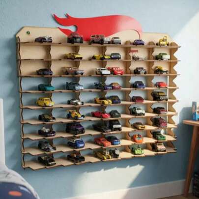 Exhibidor Para 108 Carritos 1/64 de MDF - Amarillo Mostaza - Añade 1