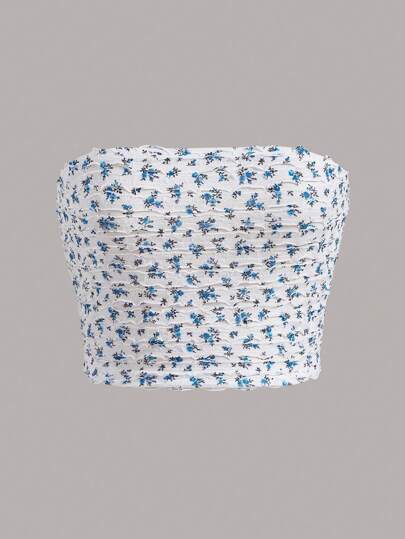 SHEIN EZwear Top tubo crop con estampado floral - Multicolor - Añade 1