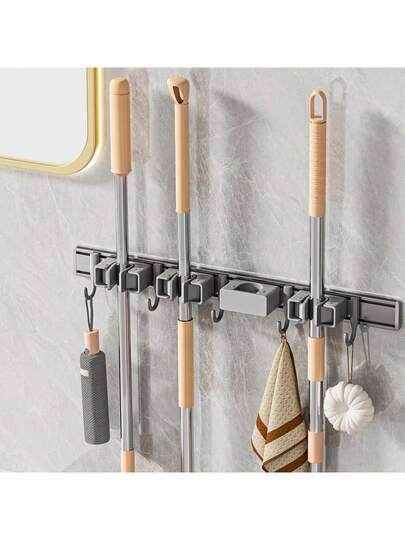 Porta Escobas y Trapeadores Pared Puede Moverse Organizador Aluminio Soporte Para Escobas Tornillos y Pegamento Colgador de Escobas y Trapeadores 50cm 1 paquetes - 1 - Añade 1