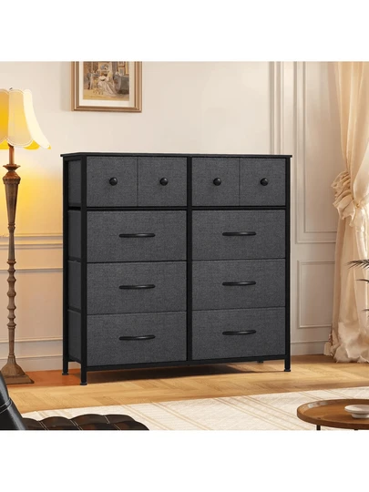 Cómoda para Dormitorio, Cajonera de Tela de 10 cajones, Cómoda para Armario, Sala de Estar Mueble para Ropa Negro - Negro - Añade 4