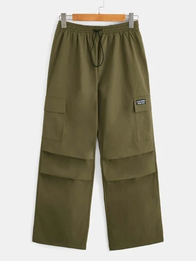 SHEIN EZwear Pantalones cargo de cintura con cordón con bolsillo con solapa - Verde militar - Añade 1