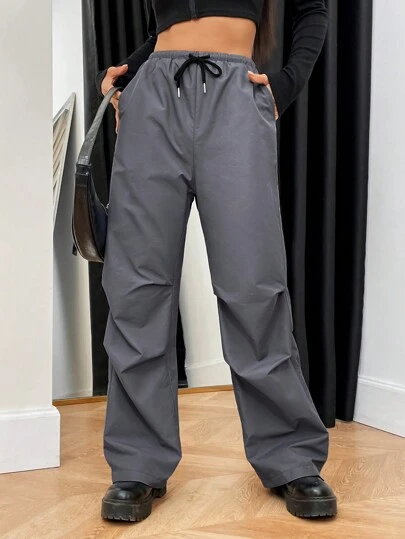 SHEIN Unity Pantalones Largos Con Cintura Ajustable - Gris Oscuro - Añade 1