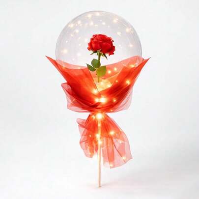 Globo Transparente con Rosa y Adorno de Luz LED - 6Pcs - Añade 1