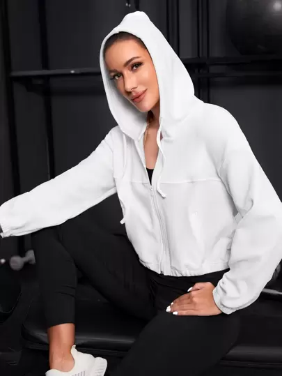 Cazadora deportiva de hombros caídos con bolsillos oblicuos con capucha - Blanco - Añade 4