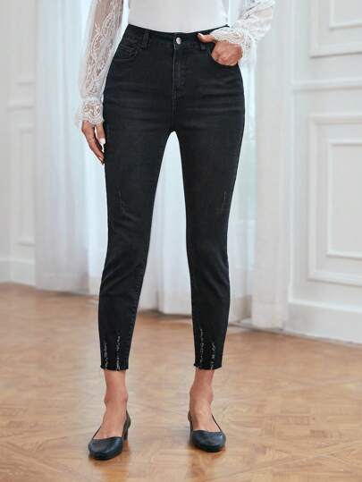 EMERY ROSE Jeans ajustados desgarro de talle alto - Negro - Añade 5