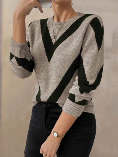 EMERY ROSE Nuevo suéter de cuello alto con diseño de rombos y rayas para otoño/invierno, blusa de manga larga - Multicolor - Añade 3